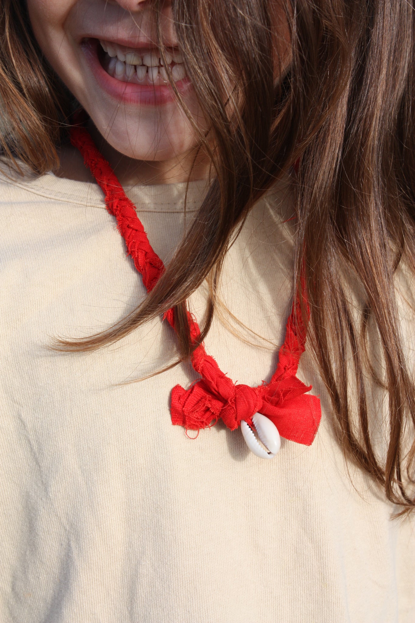 Deze handgemaakte, gevlochten ketting is verkrijgbaar in twee lengtes: