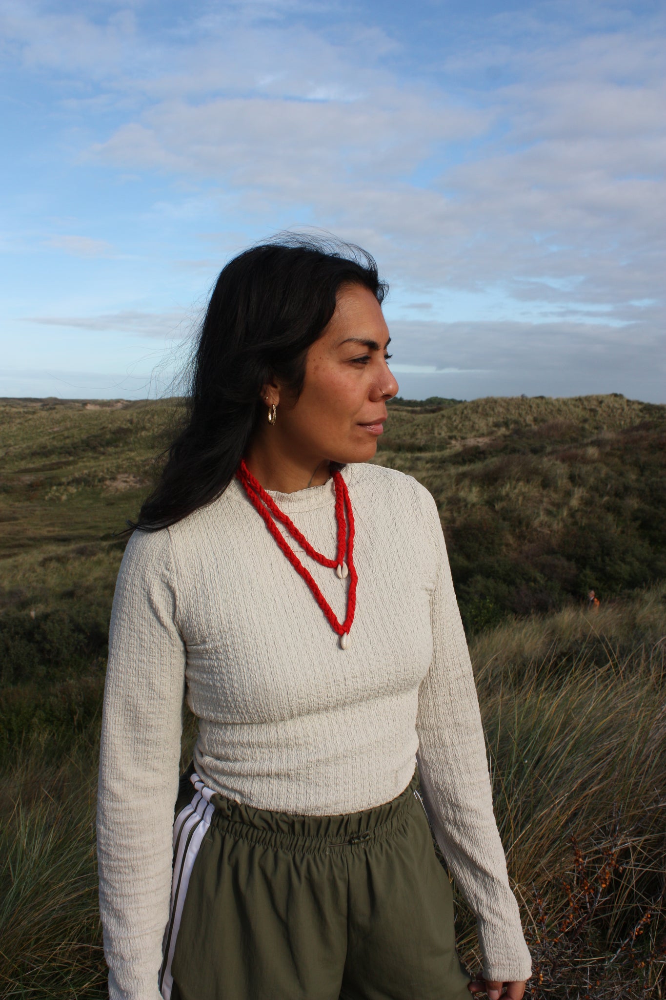 De drie strengen, samengevlochten tot één rode ketting, symboliseren de verbinding met jezelf.